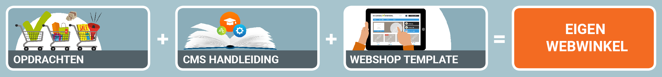 In ons platform heeft de student direct een eigen webshop + CMS handleiding inclusief alle praktijkopdrachten en theorie. Qua lesstof zijn er twee mogelijkheden: